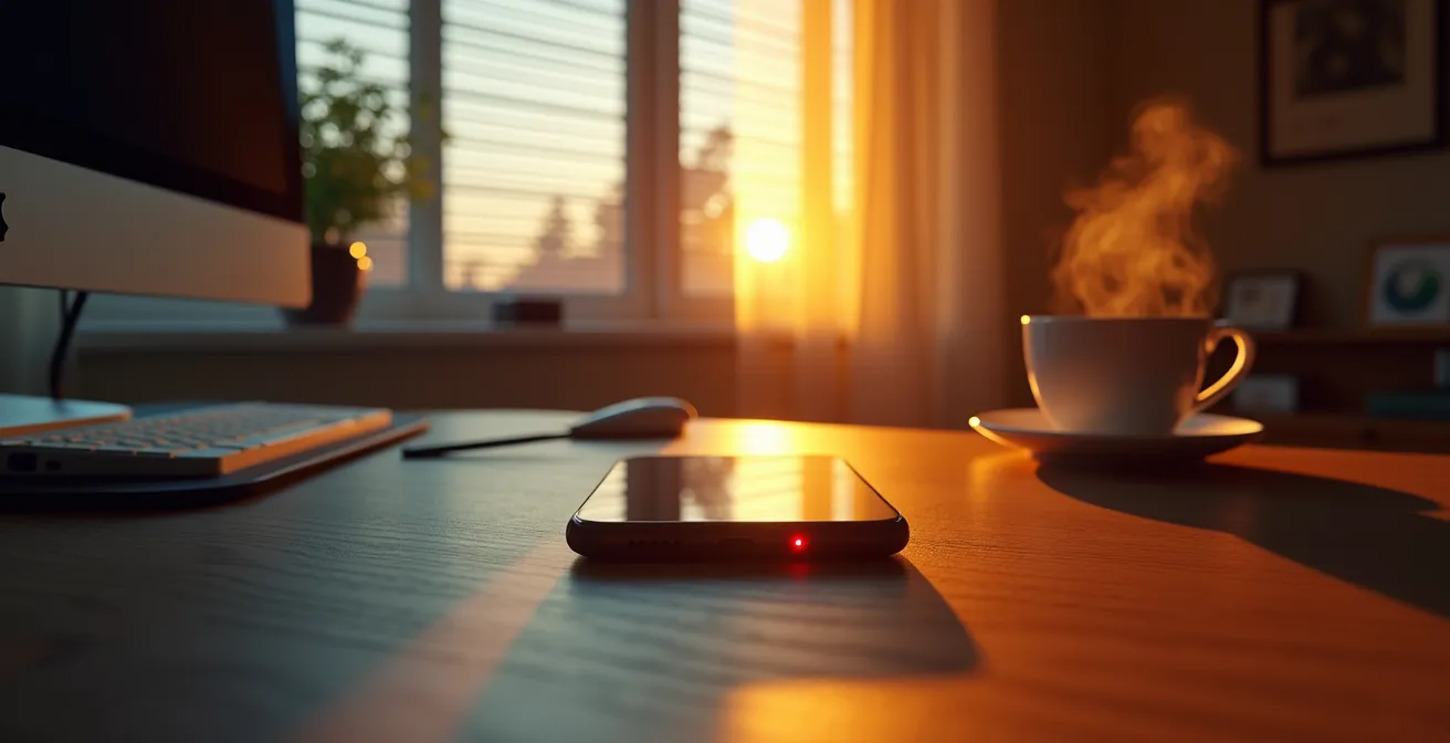 Auf dieser rechtlichen Grundlage bauen Sie Ihre persönliche digitale Architektur auf. Es geht darum, bewusste Rituale zu etablieren, die dem Gehirn signalisieren: „Die Arbeit ist jetzt vorbei.“ Das kann das bewusste Ausloggen aus allen Business-Tools sein, das physische Wegschließen des Laptops oder die Aktivierung eines „Feierabend“-Fokus-Modus auf dem Smartphone, der alle Arbeits-Apps ausblendet. Diese Handlungen sind mehr als nur Symbolik; sie schaffen technische und physische Barrieren, die die Hemmschwelle, „nur mal kurz“ nachzusehen, drastisch erhöhen.